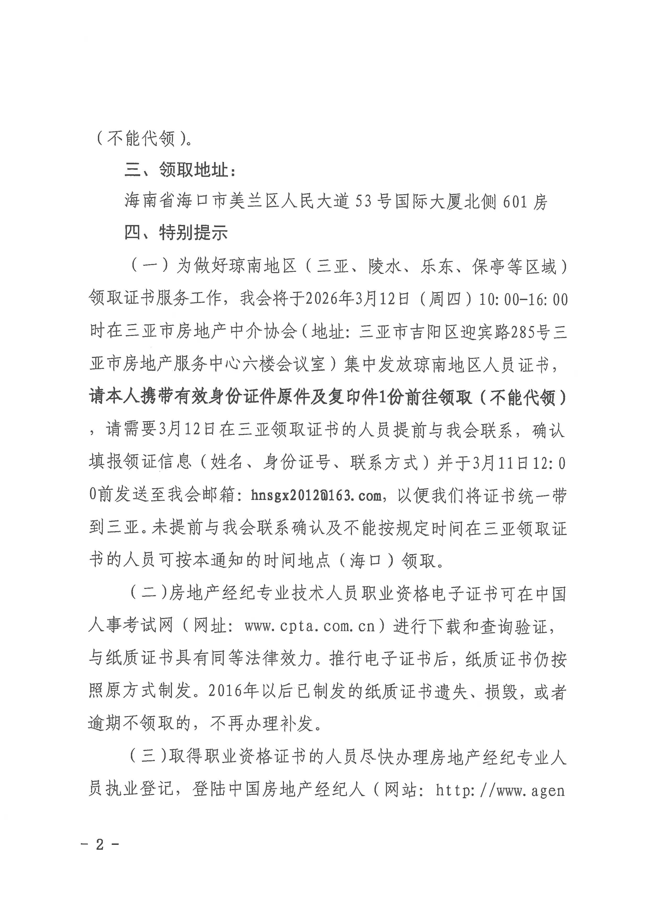 关于领取2025年全国房地产经纪专业人员职业资格证书的通知