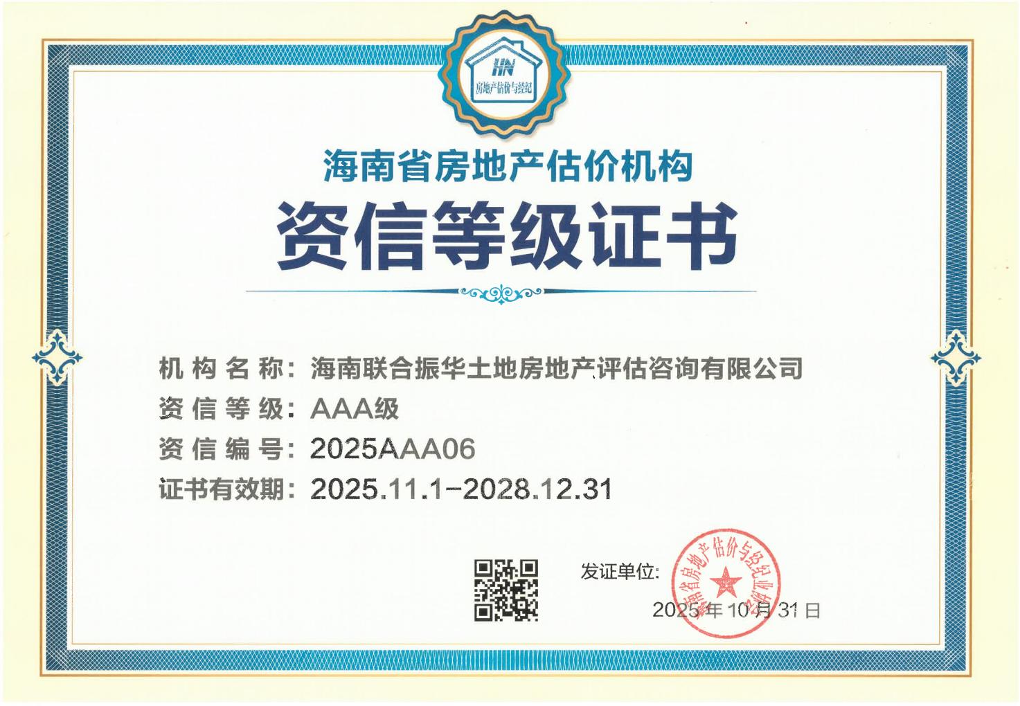 海南联合振华土地房地产评估咨询有限公司2025AAA06