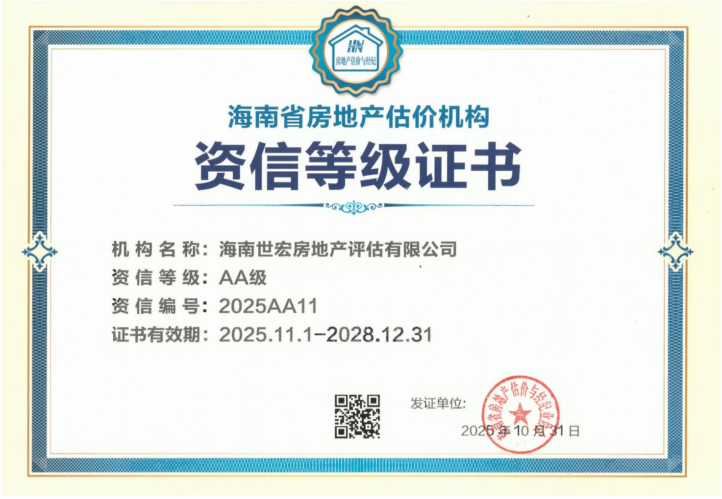 海南世宏房地产评估有限公司2025AA11
