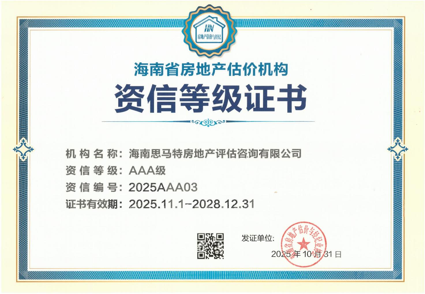 海南思马特房地产评估咨询有限公司2025AAA03
