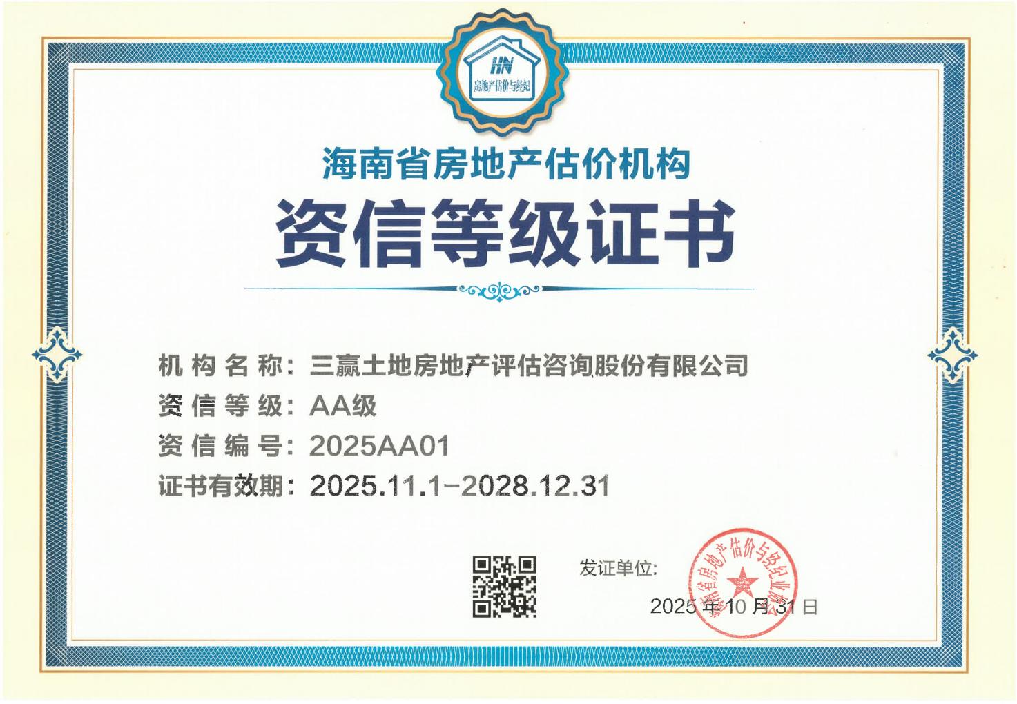 三赢土地房地产评估咨询股份有限公司2025AA01